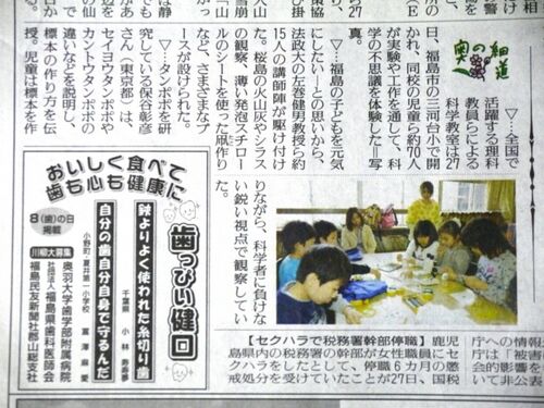 ▽…全国で活躍する理科教員らによる科学教室は27日、福島市の三河台小で開かれ、同校の児童ら約70人が実験や工作を通して、科学の不思議を体験した=写真。 ▽…福島の子どもを元気にしたい−との思いから、法政大の左巻健男教授ら約15人の講師陣が駆け付けた。…